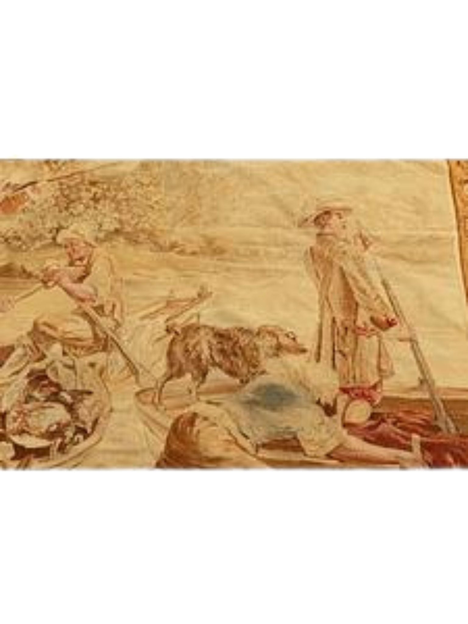 Aubusson wool tapestry. Duck hunters in boats. 19th Century 294cm x 252cm